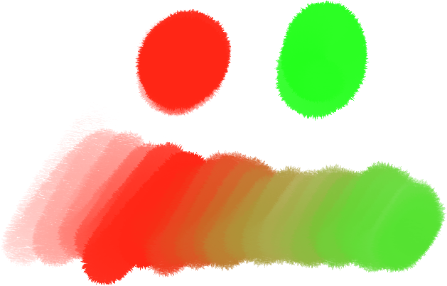 채도 높은 빨간색과 녹색을 섞어봤는데 가운데 섞이는 모습 보이시나요?