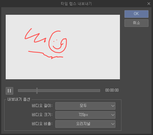 이때 타임랩스는 클튜파일인(.clip)으로 저장이 되기 때문에 저장하고 중간에 그림을 그만두더라도