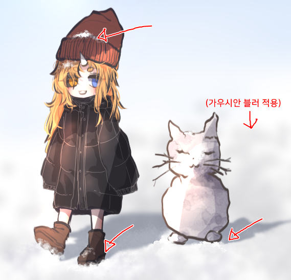 눈이 쌓인 부분을 직접 그리고 채색하기에 어렵다면