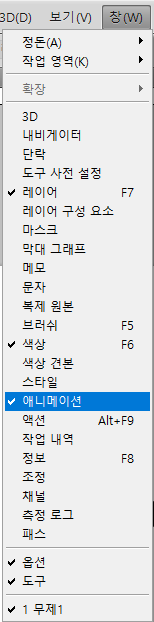 TIP 혹시나 순서가 거꾸로 레이어가 생성됐으면 [메뉴] - [프레임 반전] 눌러주시면 됩니다.