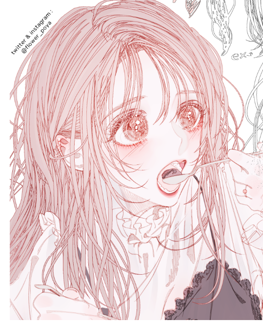 머리카락 브러쉬로 아예 완성을 시켜도 되지만 저는 부족한 느낌이 들어 스케치에만 사용하고