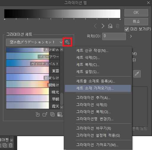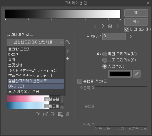 4. 이렇게 하면 그라데이션 세트에 다운받은 소재가 등록된게 보이시죠?