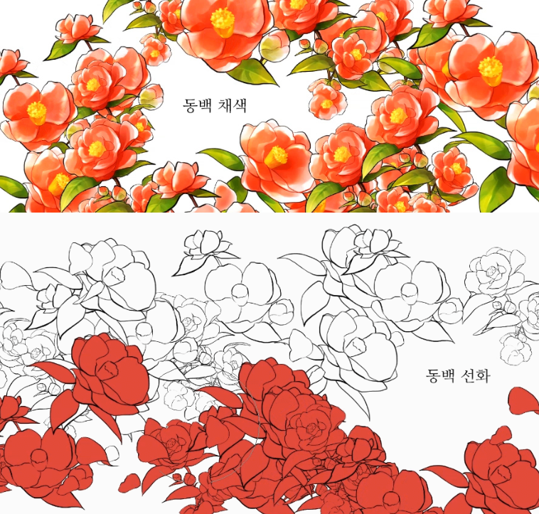 요 브러쉬는 색이 없는 선화 브러쉬라 색은 따로 채색해주어야 합니다.