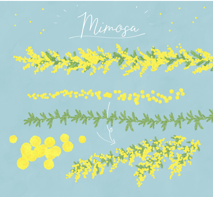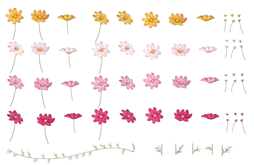 줄기와 꽃을 따로 사용 할 수 있어서 여러 형태(꽃다발, 꽃밭, 화관등)로 묘사하기가 참 좋습니다.